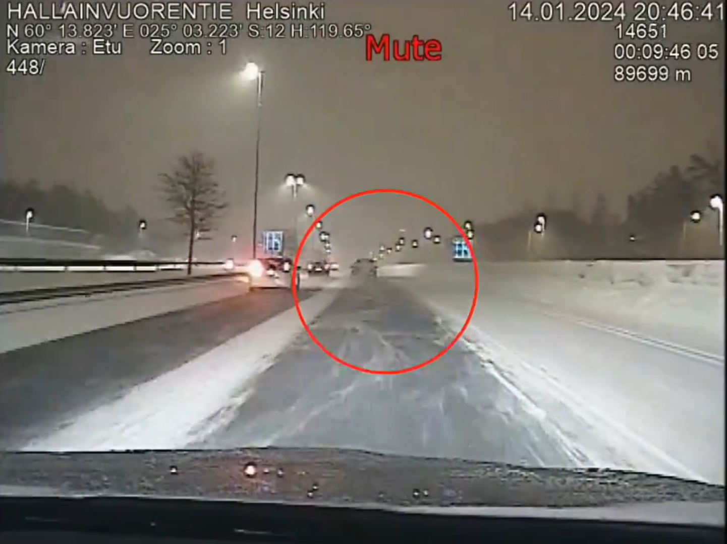 Videolta on nähtävissä, kuinka valoton henkilöauto kulkee liikenteessä muiden seassa. Tilanteesta teki vaarallisemman se, että autoa oli ajoittain vaikea havaita haastavan näkyvyyden osalta.