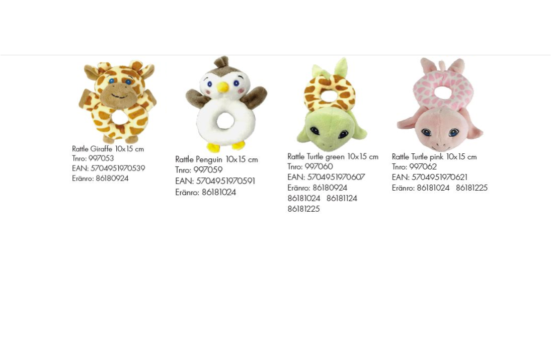 Takaisinveto koskee leluja tuotenimillä Rattles: Giraffe 10×15 cm & penguin 10×15 cm, turtle green 10×15 cm ja turtle pink 10×15 cm.