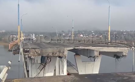 Venäläismiehittäjien uskotaan tuhonneen sillan vetäytyessään. Sosiaalisessa mediassa kiertävien videoiden perusteella sillan lähellä ei näy pahemmin venäläisjoukkoja.