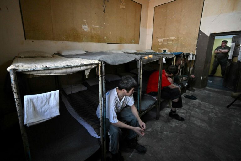 Venäläisiä sotavankeja Kiovassa sijaitsevassa vankilassa. AFP / LEHTIKUVA / SERGEI SUPINSKY