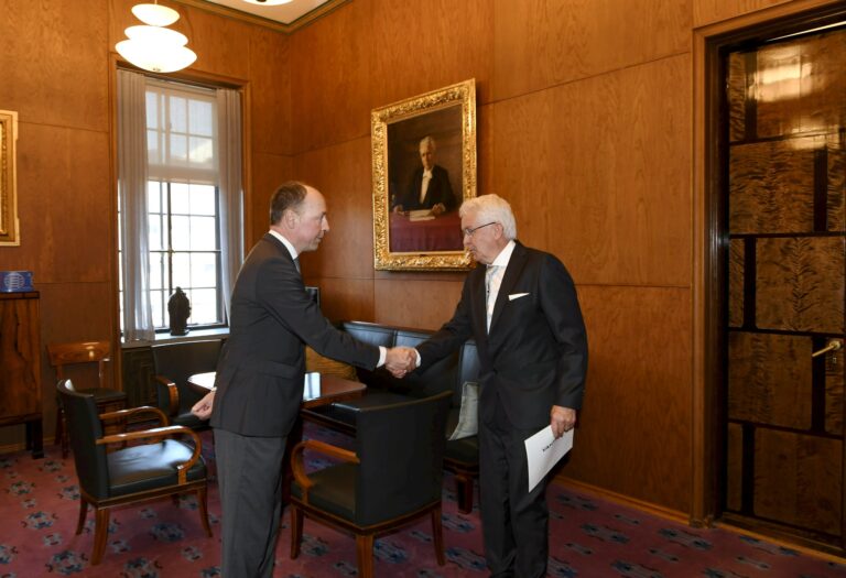 Mauri Kontu ja Anette Karlsson näyttivät asiakirjat eduskunnan puhemies Jussi Halla-aholle.