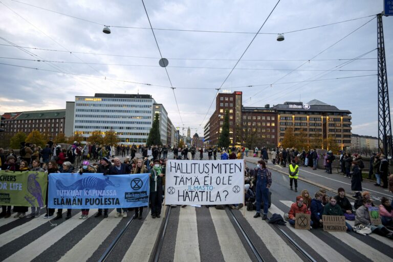 Elokapina katkaisi keskiviikkona Helsingin Pitkänsillan liikenteen.