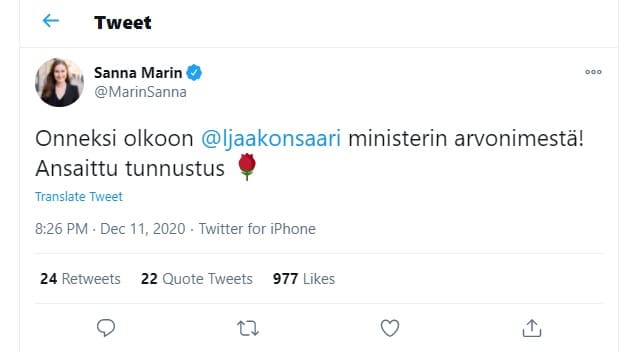 Kaksi sai arvonimen, Sanna Marin onnitteli vain puoluesisartaan