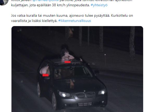 Poliisin kuvassa BMW:llä ylinopeutta 38km/h, paljastelijat roikkuvat ulkona