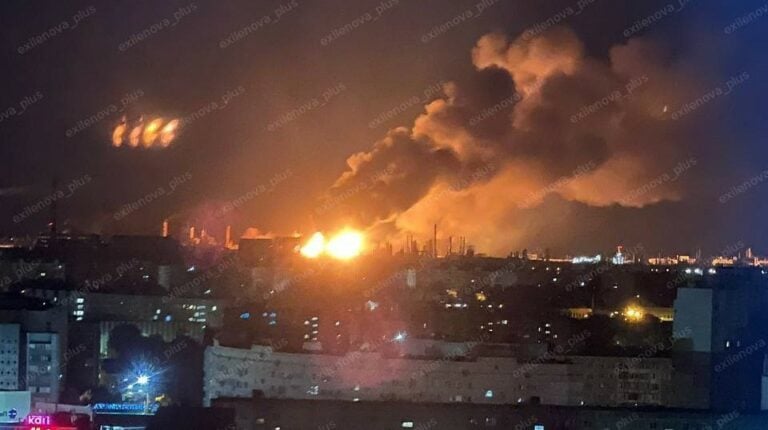 Rankka palo: Ukrainalta öinen isku öljynjalostamoon