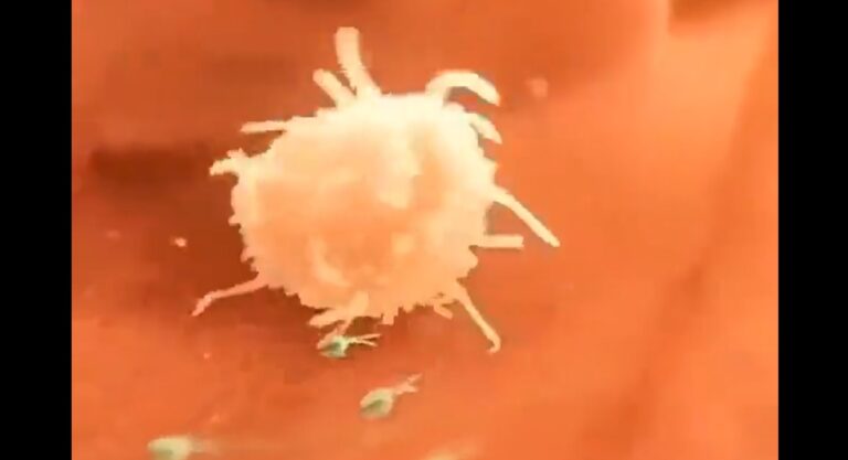 Näin immuunisolu jahtaa ja syö videolla bakteereja