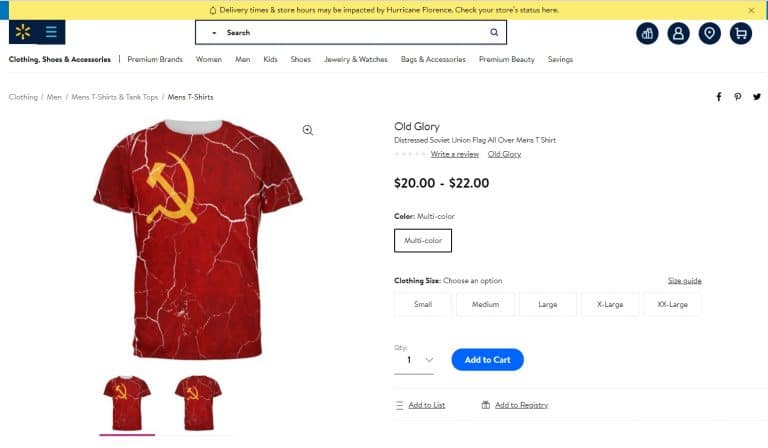 Walmart-kauppaketju lopettaa Neuvostoliitto-aiheisten vaatteiden myynnin.
