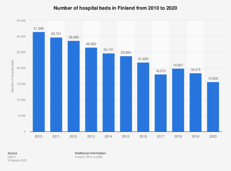 Kuva paljastaa muutoksen: Sairaaloiden vuodepaikkoja kaksi kertaa vähemmän kuin 10 vuotta sitten