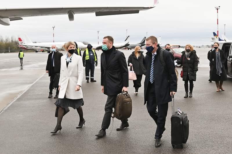 On our way to Kiev to express solidarity with Ukraine and our unwavering support in the face of mounting escalations by Russia. Baltic trio with – @eliimets and @edgarsrinkevics. pic.twitter.com/qj1AOfQ2MY
