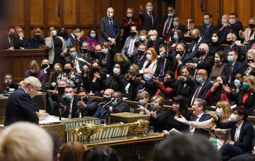 Johnson edustaa konservatiivipuoluetta. BBC:n mukaan eroa vaativat ainakin konservatiiviset parlamentin jäsenet Douglas Ross, William Wragg, Caroline Nokes ja Roger Gale. Johnsonin hallituksen jäsenet sen sijaan puolustavat pääministeriään.
