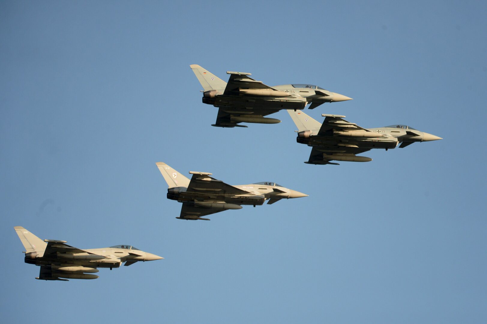 RAF:n käyttämiä Typhoon-hävittäjiä. LEHTIKUVA / MIKKO STIG