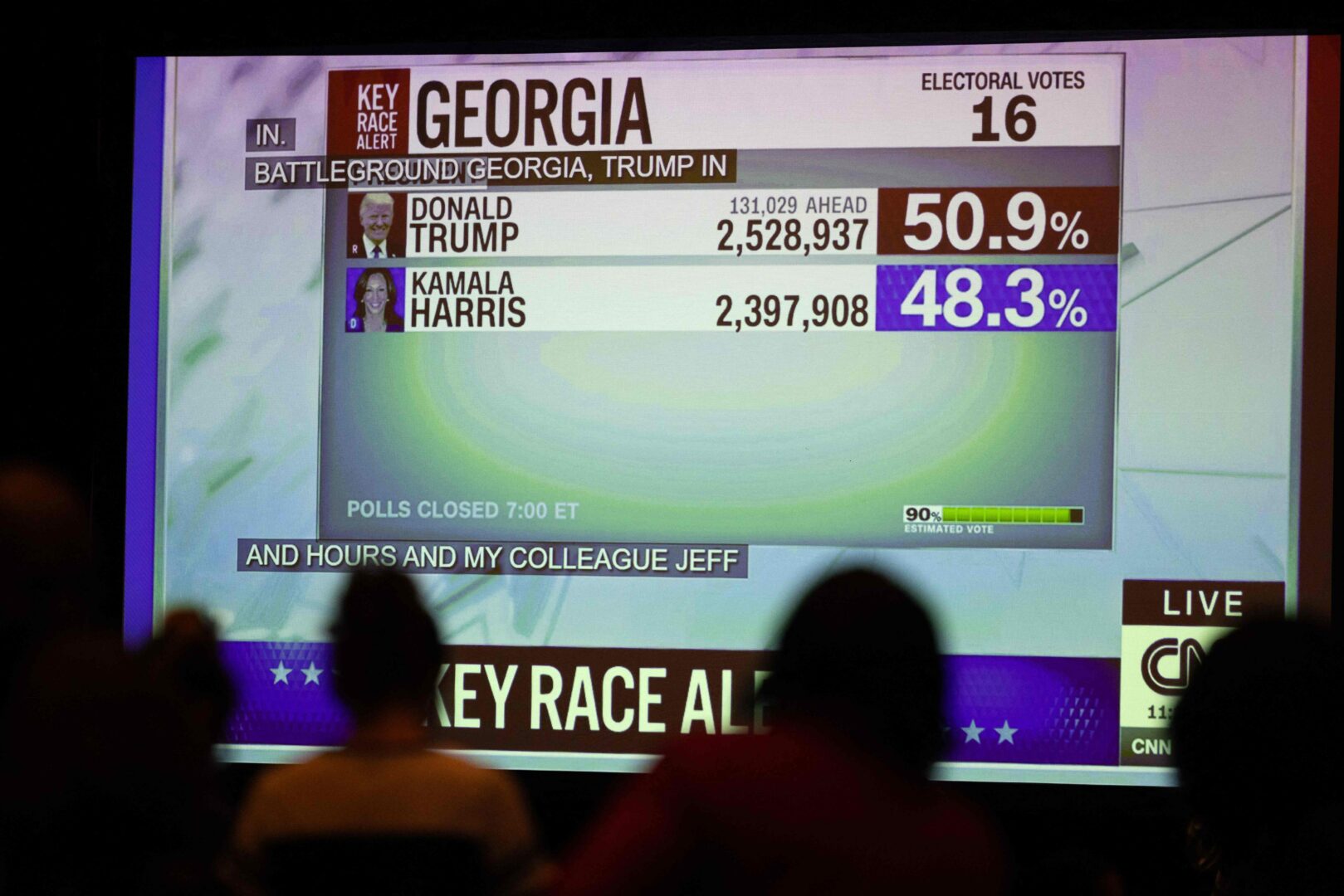 Kun noin 97 prosenttia äänistä on laskettu, Trump johtaa prosentein 50,7-48,4. Äänissä etumatka on 120000.