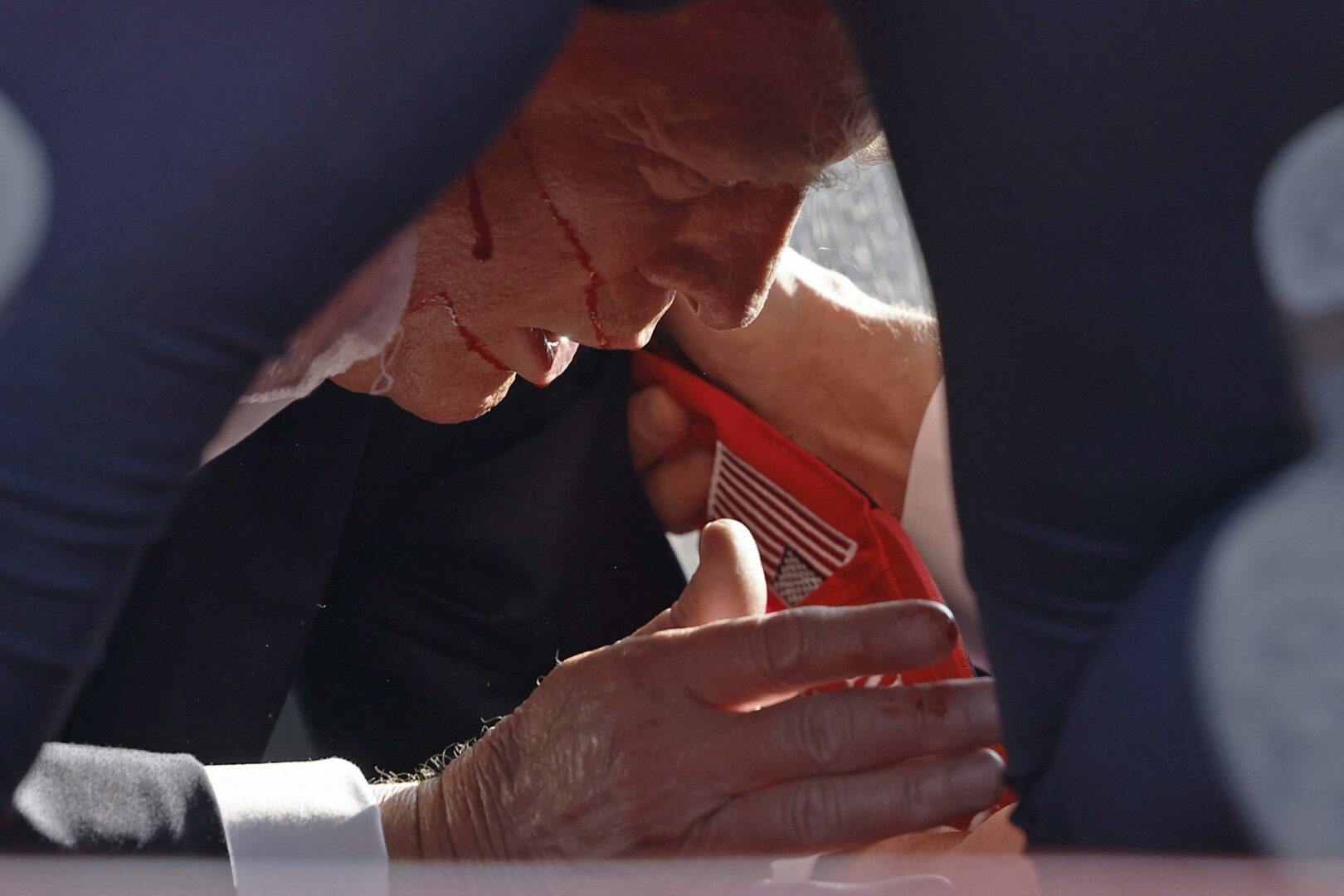 Tämän jälkeen yksi agenteista huomauttaa Trumpin pään olevan veressä. Toinen sanoo, että heidän on poistuttava.
