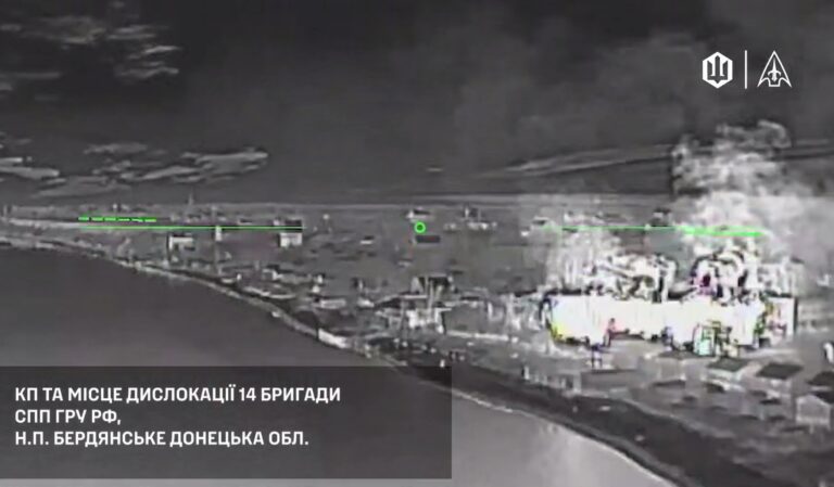 Droonit osuivat Donetskin alueella Katšarskessa sijainneeseen varastoon sekä Truzhenskassa sijainneeseen korjausvarikkoon. Berdianskessa droonit taas osuivat Venäjän sotilastiedustelupalvelu GRU:n komentokeskukseen, jossa piti majaa 14. kaartin Spetsnaz-erikoisjoukkoprikaati.