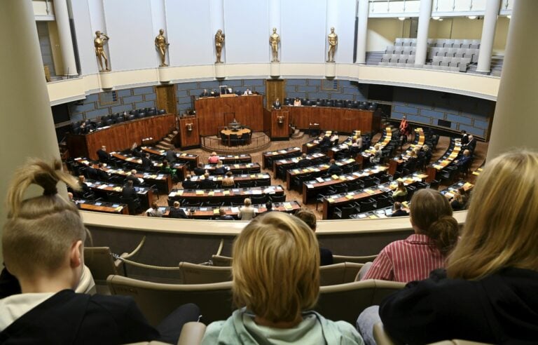 Koululaisia seuraamassa budjettikäsittelyä eduskunnassa., LEHTIKUVA / MARKKU ULANDER