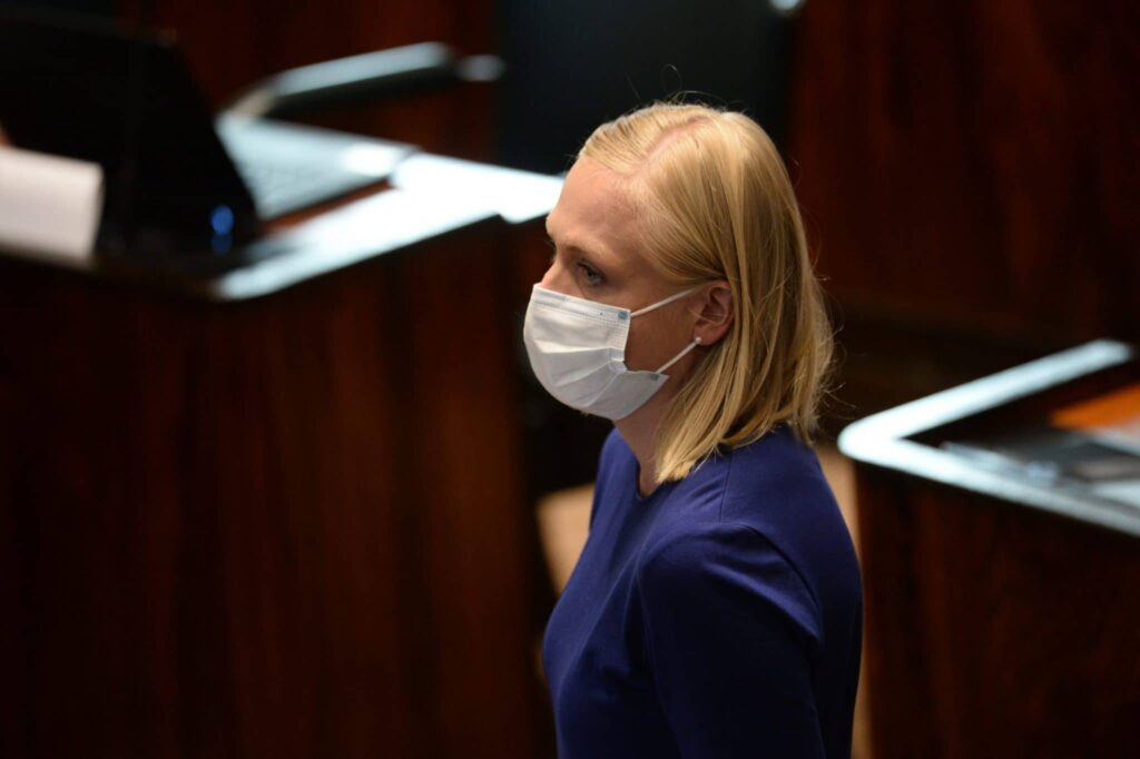 Kokoomuksen varapuheenjohtaja Elina Valtonen toteaa, että pääministeri Sanna Marinin (sd.) hallitus iloitsee talouskasvusta.
