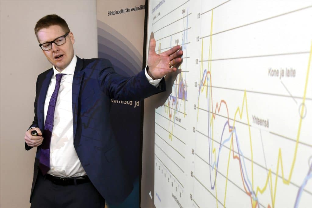 – Palveluissa ja rakentamisessa tultiin alaspäin. Teollisuudessa tuotantokapasiteetti oli kokonaan käytössä 68 prosentilla vastaajista, sanoo EK:n johtava ekonomisti Sami Pakarinen.