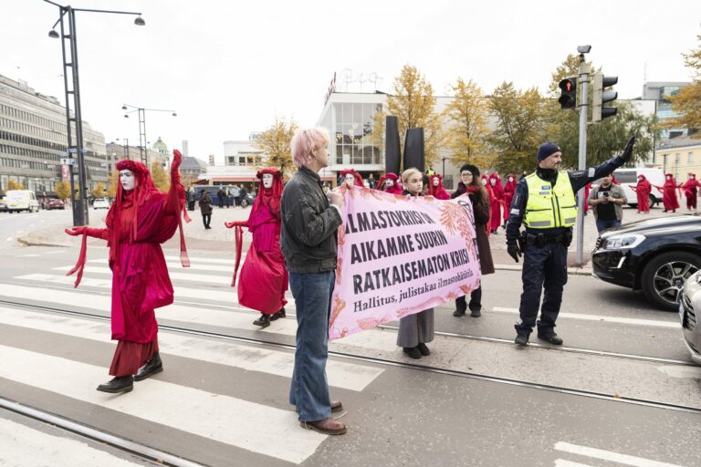 – Veriprikaati tunnustaa ilmastokriisin uhkana olemassaolollemme. Se viestii ympäristö- ja ilmastohätätilasta ja levittää kulkiessaan myötätuntoa kaikkea elävää kohtaan. Kulkueen elokapinalliset ovat pukeutuneet punaisiin asuihin, jotka symboloivat ekokatastrofiin liittyvää kuolemaa, kuten massasukupuuttoja. Kulkueeseen osallistuu myös tukijoukkoja, Elokapina selittää tiedotteessaan.