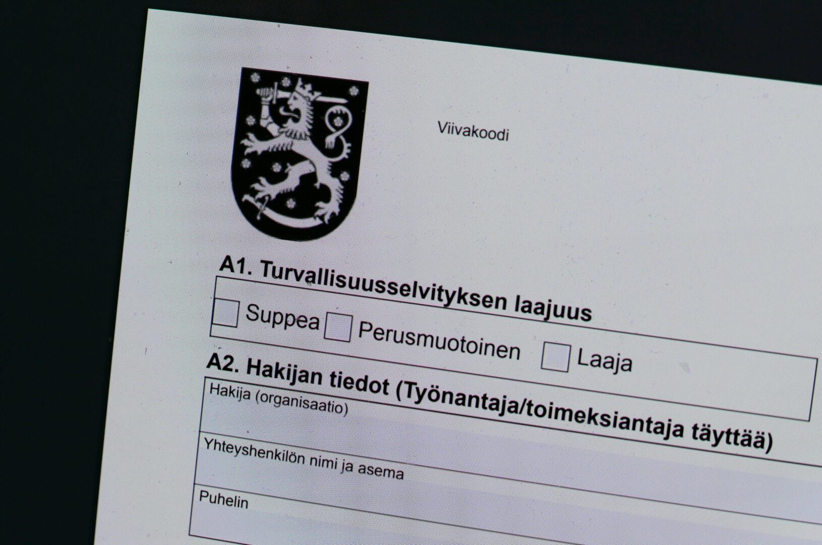 Turvallisuusselvityslomake kuvattuna Supon www-sivuilta Helsingissä 16. heinäkuuta 2020., LEHTIKUVA / TEEMU SALONEN