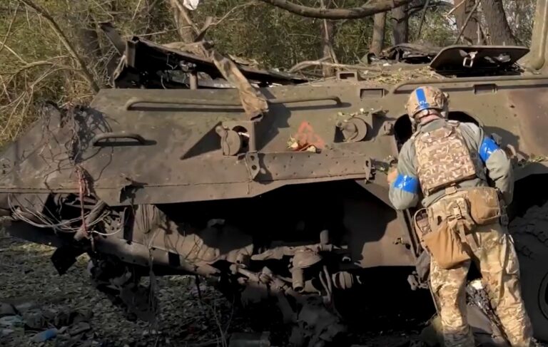 Kraken-yksikön julkaisemalla videolla sotilaat tutkivat tuhottua kalustoa auringonnousun jälkeen. Toimintakunnossa oleva BTR-panssariajoneuvo ajetaan kohti Ukrainan joukkojen asemia.