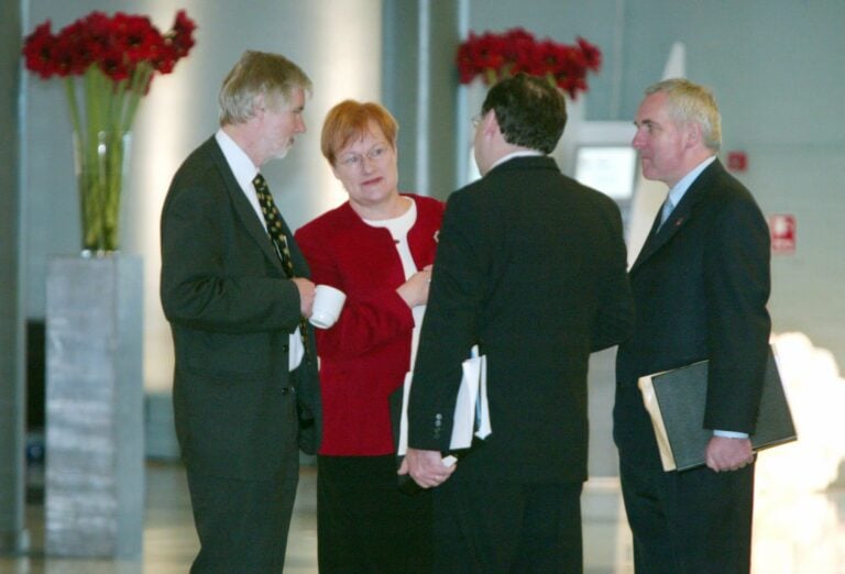 – Tämä oli Tarja Halosen ja Erkki Tuomiojan lahja isänmaalle. He hyväksyivät EU:n solidaarisuutta korostavaksi tarkoitetun ylevän julistuksen tuhoamisen. On mielenkiintoista seurata, miten EU korjaa tämän parikymmentä vuotta sitten puolueettomuudella koketeeranneiden jäsenensä möhläyksen, Tarkka kommentoi.