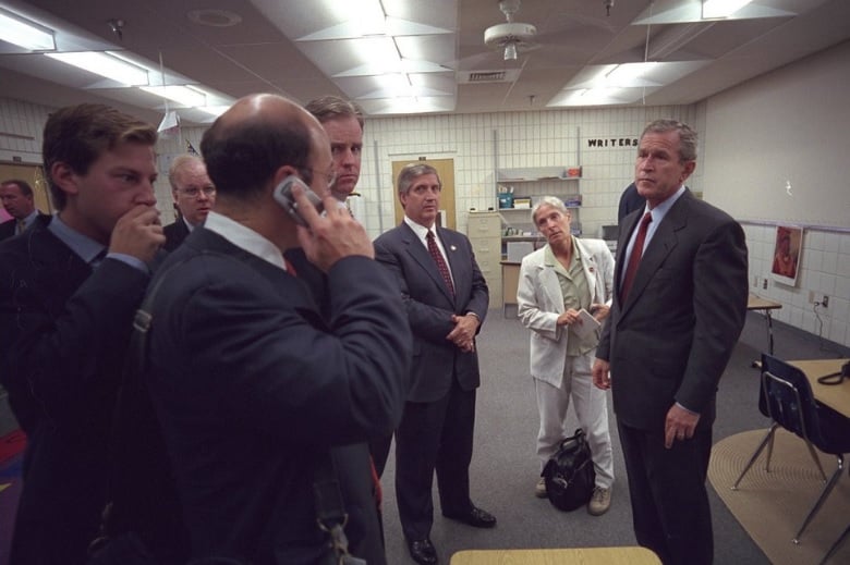Fleischer laittoi twitteriin 17 vuoden takaisia valokuvia ja ylös merkitsemiään huomioita presidentin ympärillä tapahtuneesta iskujen jälkeisen kahdeksan kaoottisen tunnin aikana. Tuolloin presidenttiä vietiin turvaan Floridasta Air Force One -lentokoneella.