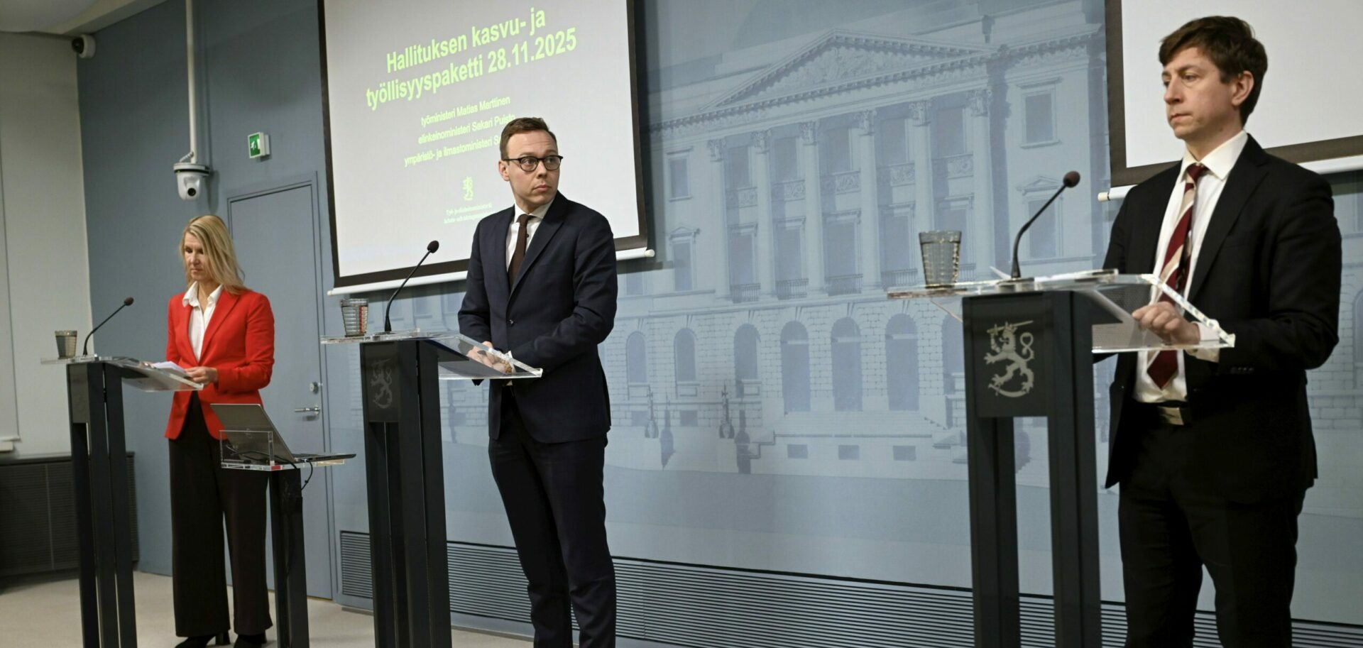 Työ- ja elinkeinoministeriö on valmistellut hallituksen linjausten mukaisen kasvu- ja työllisyyspaketin, jonka tavoitteena on vahvistaa Suomen talouskasvua, vauhdittaa investointeja ja parantaa siten työllisyyttä. Ministerit Matias Marttinen (kok.), Sakari Puisto (ps.) ja Sari Multala (kok.) esittelivät pakettia perjantaina tiedotustilaisuudessa.