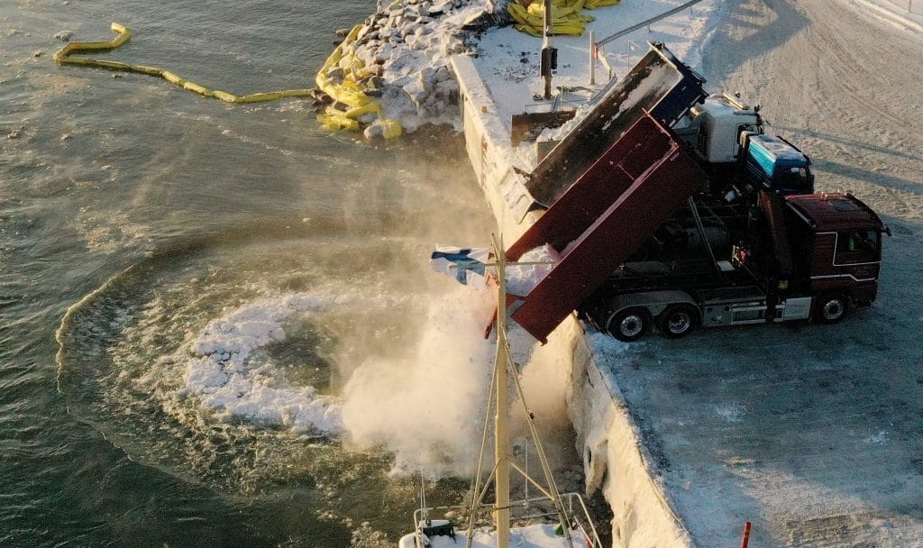 – Helsingin kaupunginvaltuusto on päättänyt, että lumen kaataminen mereen tulisi lopettaa, mutta tällä päätöksellä ei ole ollut mitään vaikutuksia. Kaupunki perustelee lumen kaatamista mereen muun muassa sillä, että lumen kuljettaminen muualle aiheuttaisi hiilidioksidipäästöjä.