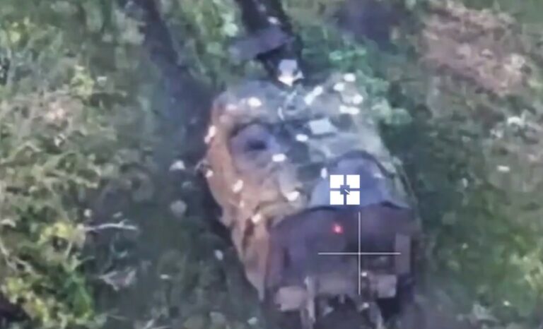 Ukrainan kansalliskaartin presidentillinen Burevii-prikaati on julkaissut videon venäläisen ”kilpikonnatankin” tuhoamisesta rintamalla.