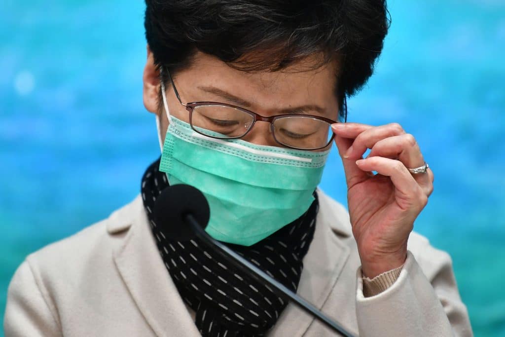 Luotijunien ja autolauttojen liikenne keskeytetään torstaista alkaen. Hongkongin hallintojohtaja Carrie Lam teki BBC:n mukaan ilmoituksen hengityssuoja kasvoillaan.