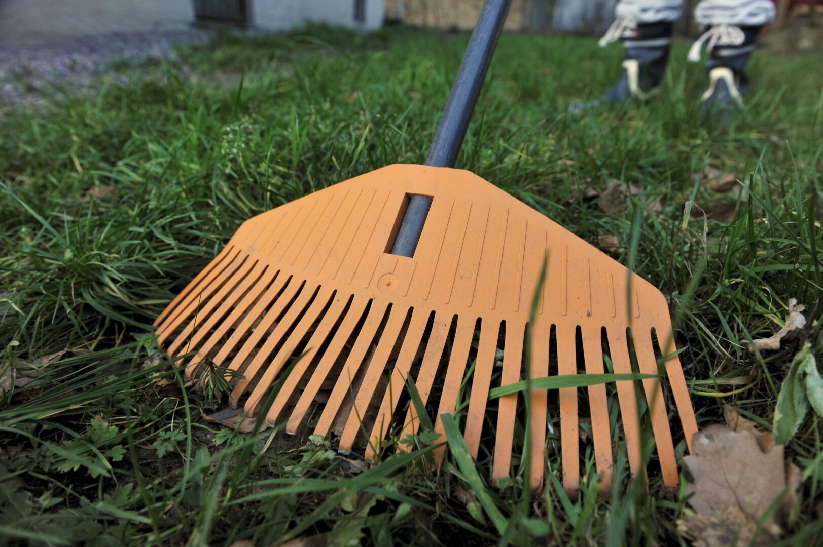 Oranssi muoviharava omakotitalon nurmikolla Vantaalla sunnuntaina 18. marraskuuta 2018. LEHTIKUVA / TIMO JAAKONAHO