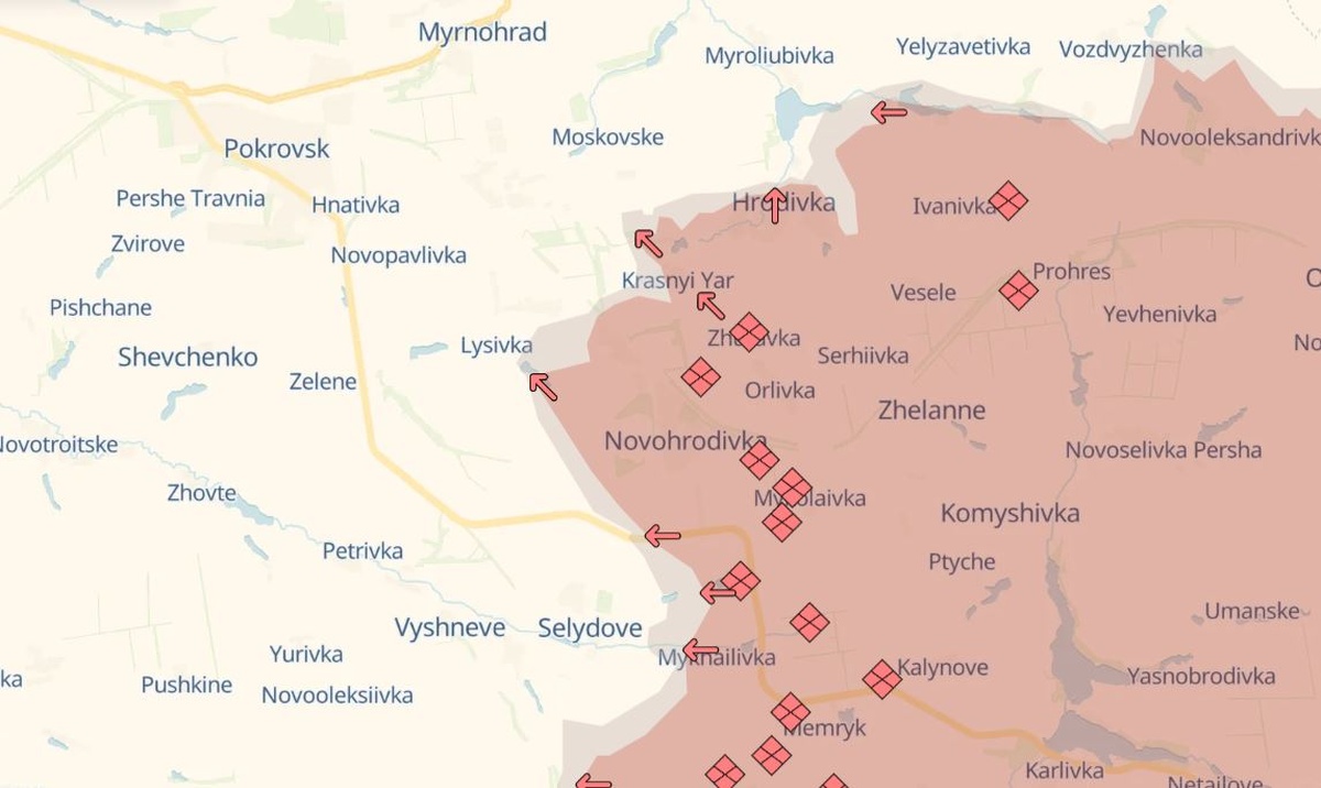 Hyökkääjän sanotaan jatkaneen operaatioitaan Pokrovskin itäpuolella.