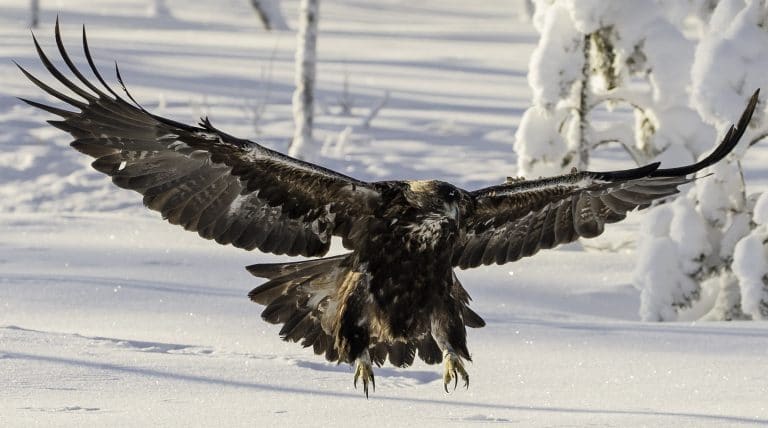 Maaliskuun lopulla iisalmelainen luontoharrastaja ja metsästäjä, metsäinsinööri Antti Juutinen lähti hankiaisten houkuttelemana koiran kanssa lenkille tutulle suoalueelle Pyhäntään. Kovan hangen päälle oli satanut sentin verran pehmeää lunta. Ulkoilupäivän yllättävin havainto oli hangelta löytynyt kuollut kotka. Kotkan ympärillä oli taistelun jälkiä ja hieman verta. Kotka oli vielä tuore, samoin oletetun taistelun jäljet.