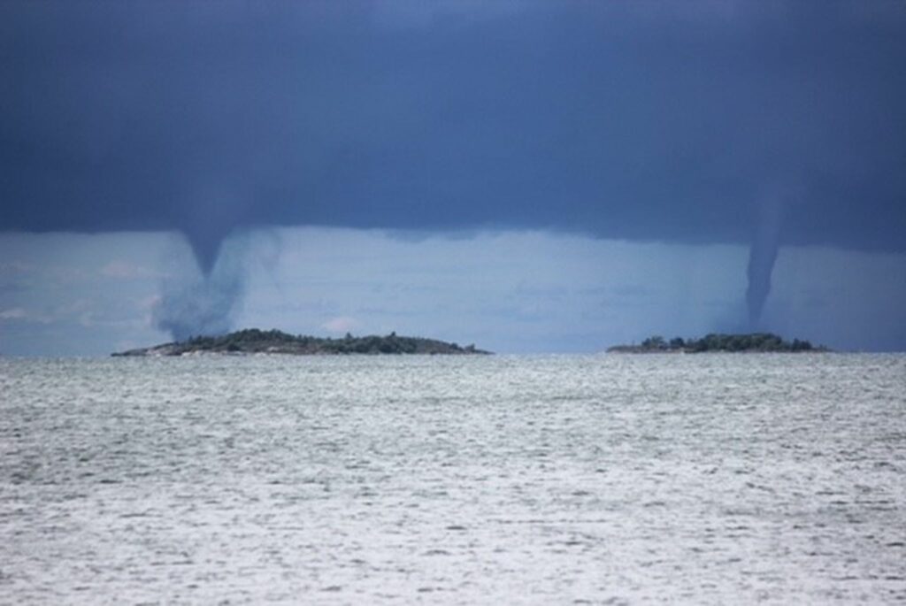 Kustavissa nähtiin lauantaina merellä useita vaikuttavan näköisiä trombeja, Iltalehti kertoo.