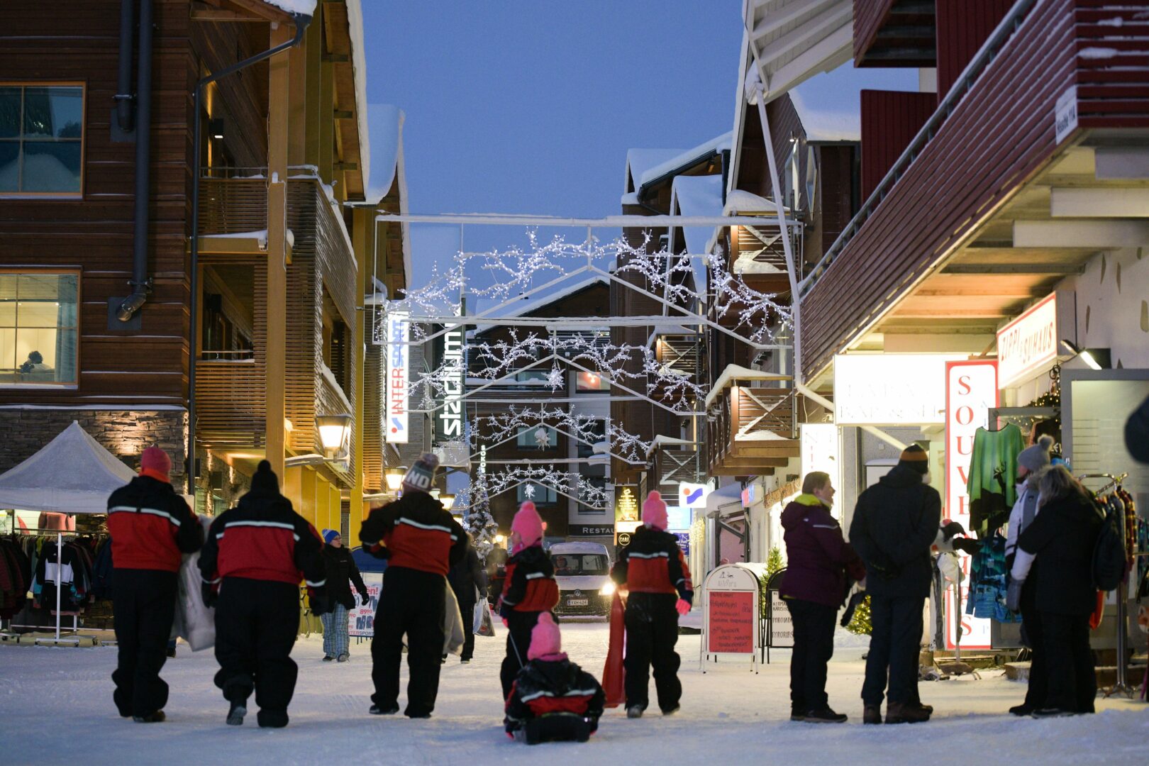 Matkailijoita Levillä Kittilässä. LEHTIKUVA/IRENE STACHON