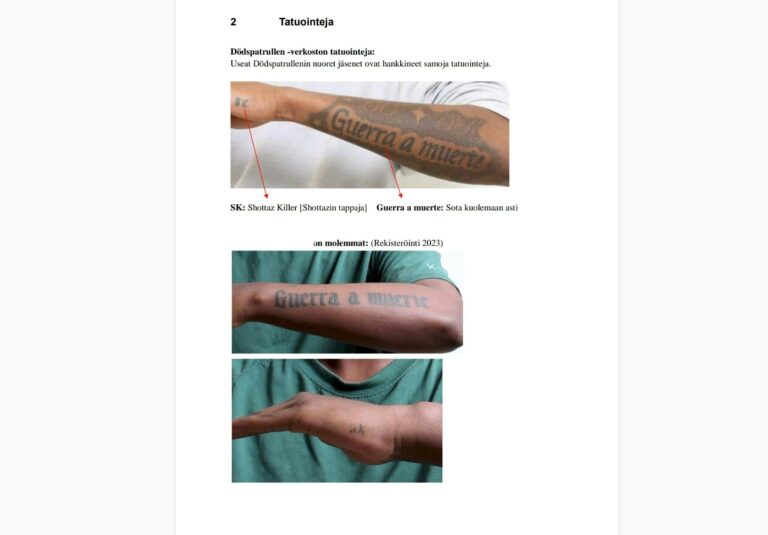 Ilta-Sanomat kertoo, että Suomen poliisin Ruotsin viranomaisilta saamaa materiaali paljastaa, että usean jengiläisen käsiin on tatuoitu espanjankielinen lause ”Guerra a muerte” eli suomeksi ”sota kuolemaan asti”.