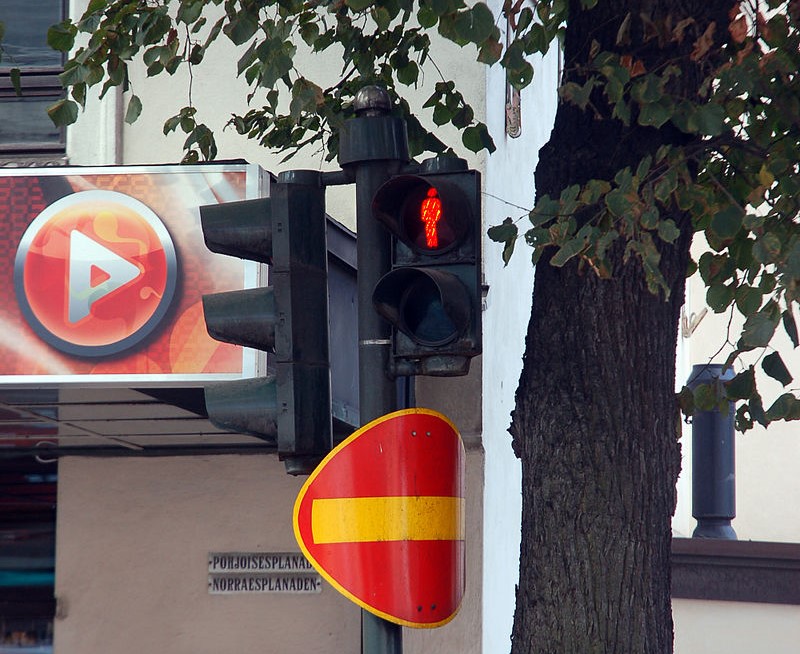 Jalankulkijan rike tallentui poliisin kameraan. Kuvituskuva liikennevalosta. WIKIMEDIA COMMONS