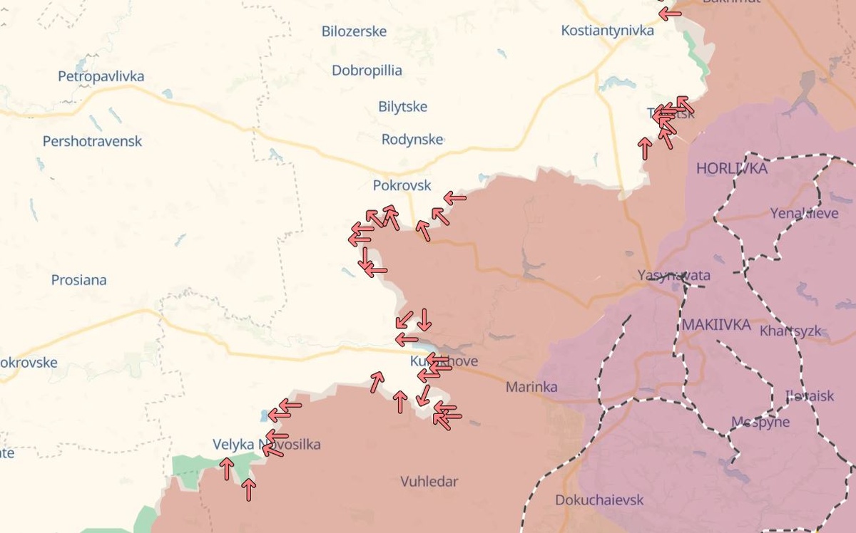 Tilanteen sanotaan vaihtelevan huomattavasti pitkällä rintamalinjalla. Tykistöä on käytetty aktiivisemmin Donetskin alueella tehtävien hyökkäysoperaatioiden tukena. Voimavaroja on ohjattu erityisesti Pokrovskin ja Kurakhoven kaupunkien suunnalle.
