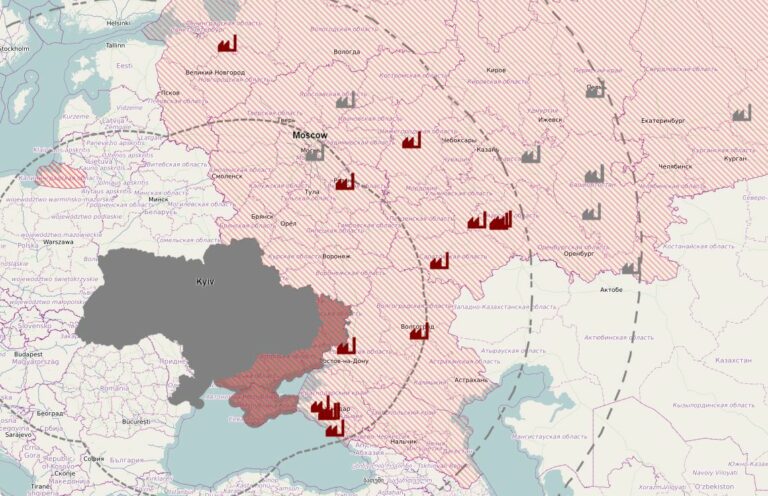 Kyiv Independent-, Ukrayinska Pravda– ja Kyiv Post -lehtien sekä muiden medioiden julkaisemiin tietoihin pohjautuva kartta näyttää, kuinka laajasti öljykohteita on moukaroitu viime aikoina. Punaisella merkittyjen kohteiden osalta on kerrottu ”lennokkivälikohtauksista” tai tulipaloista vuoden 2024 aikana.