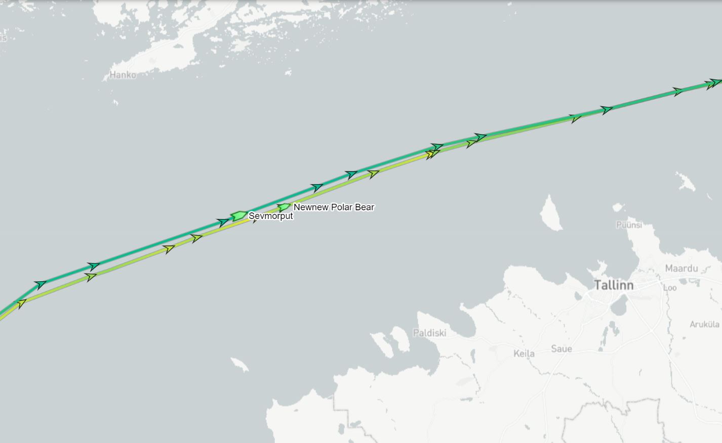 Vuonna 1988 valmistunut Sevmorput on 260 metriä pitkä, ja sitä on käytetty Jäämerellä sijaitsevien tukikohtien huoltamiseen. Se lähti 18. syyskuuta Murmanskista kohti Itämerta, jonne se saapui 6. lokakuuta. Newnew Polar Bear jatkoi matkaansa Kaliningradista kohti Pietaria 6. lokakuuta.
