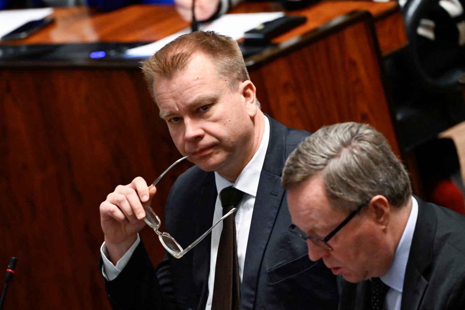 Keskustan puheenjohtaja Antti Kaikkonen eduskunnassa. LEHTIKUVA / RONI REKOMAA