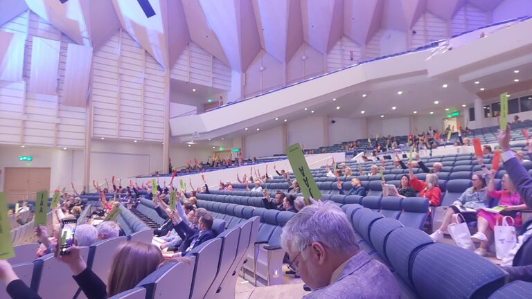 Puoluekokous hyväksyi puoluehallituksen kannan ilman äänestystä ja keskustelutta.