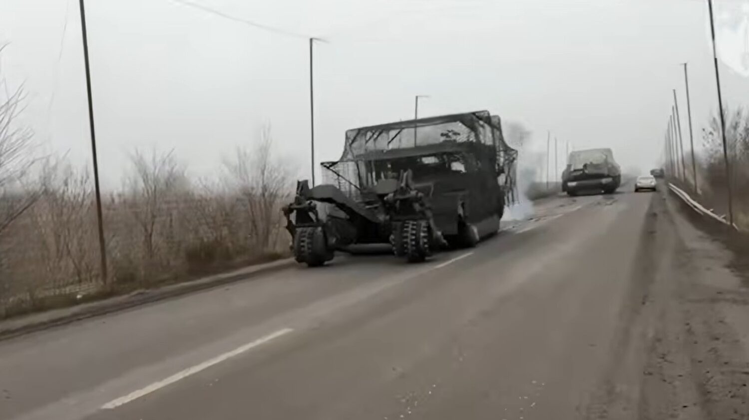 Se sai pian kimppuunsa useita FPV-drooneja ja menetti liikkumiskykynsä. Ammusten loputtua miehistö poistui vaunusta ja pakeni turvaan.