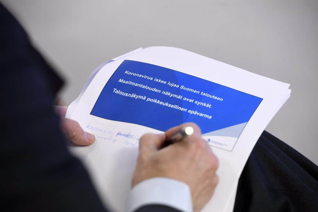 – Pandemian pitkittyminen tai kriisin leviäminen nykyisestä kotimaisten palvelumarkkinoiden ongelmista kansainvälisen kaupan romahdukseen on uhka, joka edellyttää Suomen hallitukselta varautumista pidempikestoiseen kriisiin.