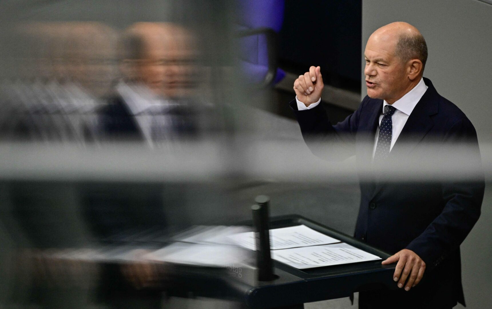 Liittokansleri Olaf Scholz puhui Saksan parlamentissa 11. syyskuuta. / AFP / LEHTIKUVA / JOHN MACDOUGALL