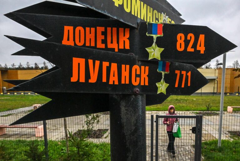 Venäjän hyökkäykset Avdiivkassa Donetskin alueella ovat hiljenneet. Kuvassa tienviitta Donetskiin. LEHTIKUVA / AFP, AFP / LEHTIKUVA / YURI KADOBNOV