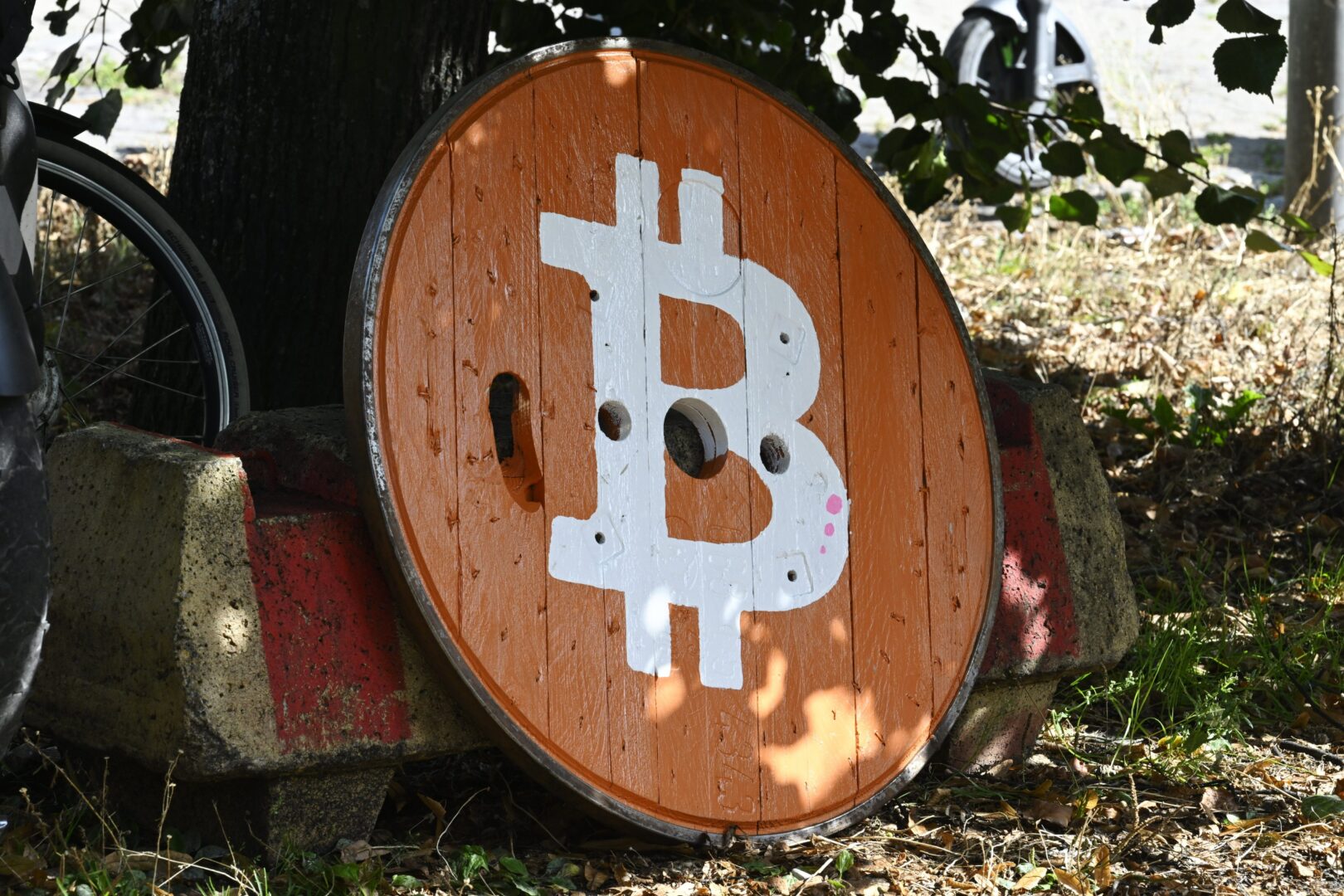 Digitaalisen valuutan Bitcoinin logo. LEHTIKUVA / HEIKKI SAUKKOMAA