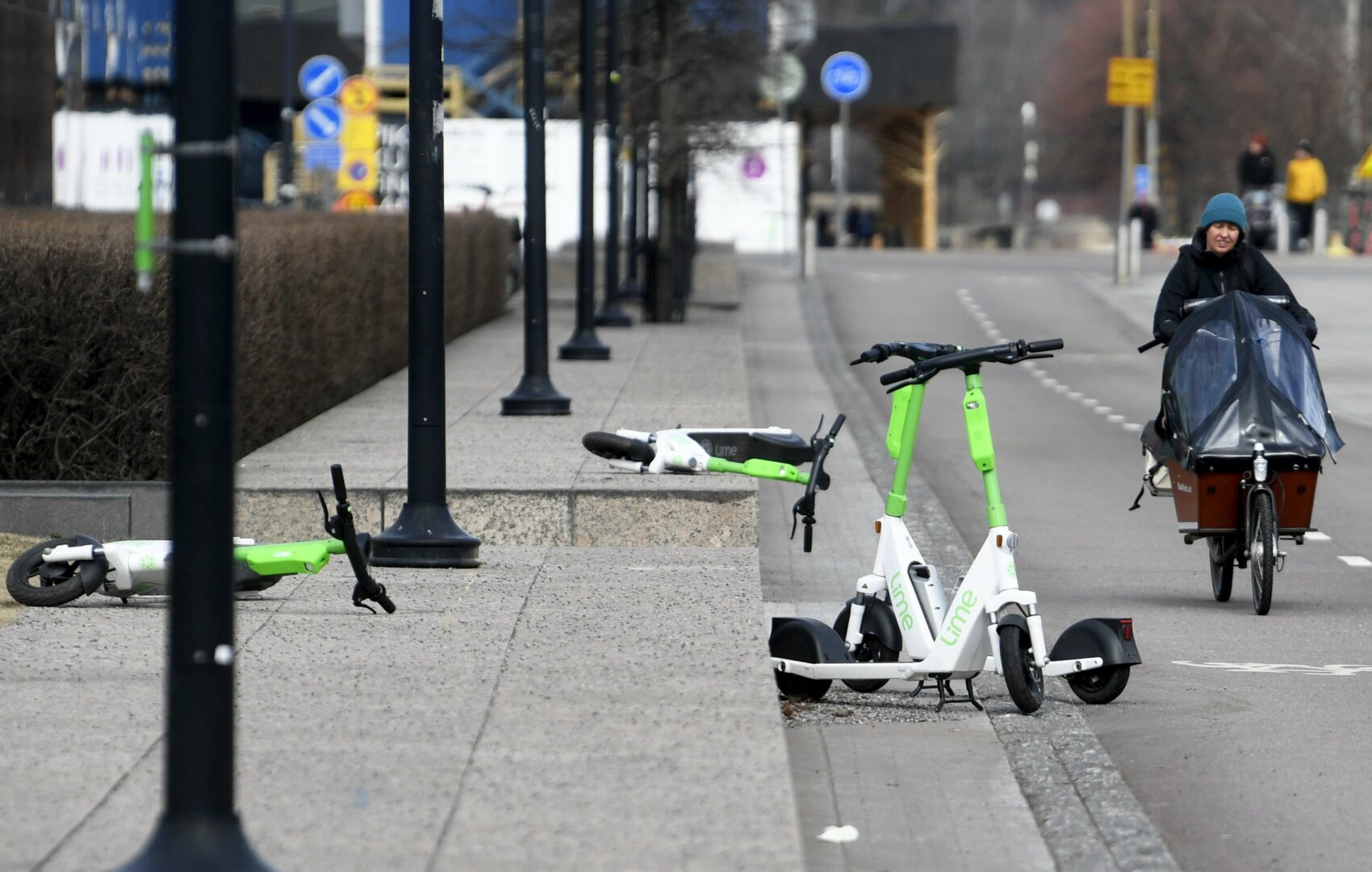 Pyörällä liikkeellä ollut mies törmäsi toiseen polkupyöräilijään sen jälkeen, kun hän joutui väistämään risteysalueelle lojumaan jätettyä kuutta sähköpotkulautaa. Myös toisesta suunnasta tullut pyöräilijä joutui väistämään skuutteja. Risteysalueella liikkumatila oli rajallinen alueella olevien betoniporsaiden takia ja lopulta vastakkaisista suunnista tulleet pyöräilijät törmäsivät toisiinsa.