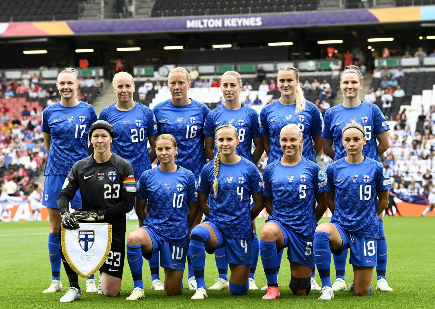 Helmarit poseeraa ennen Suomi-Tanska -ottelua 12. heinäkuuta. LEHTIKUVA/EMMI KORHONEN