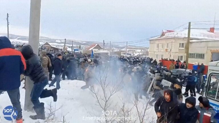 At least 40 people were injured during protests in Baymak, Bashkortostan – 22 of them policemen. According to the Russian website Baza, no one required hospitalization. Yesterday, the court in Baymak sentenced local activist Fail Alsynov to 4 years in a penal colony. pic.twitter.com/QqUvzpOWIq